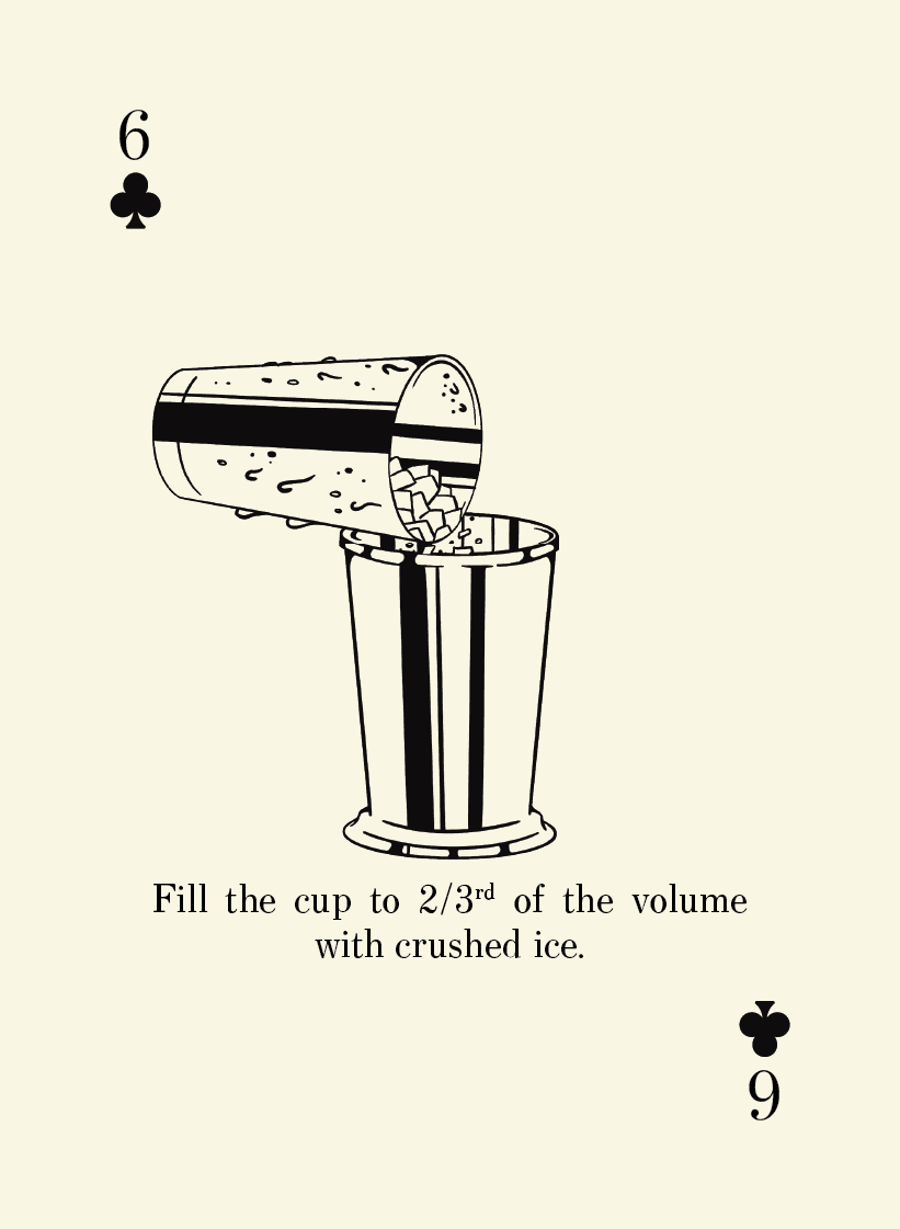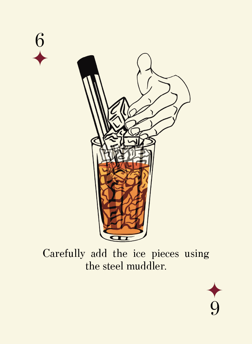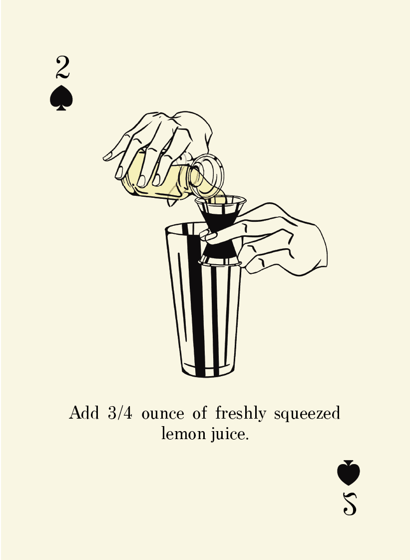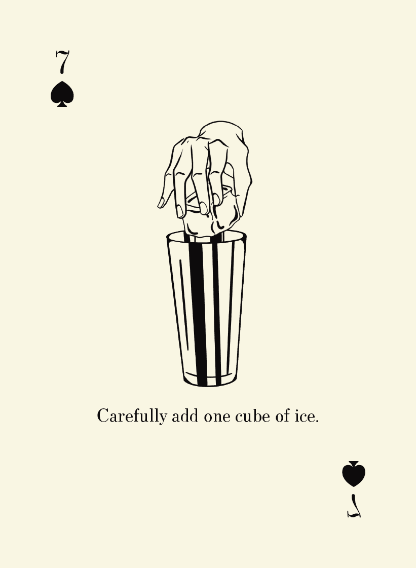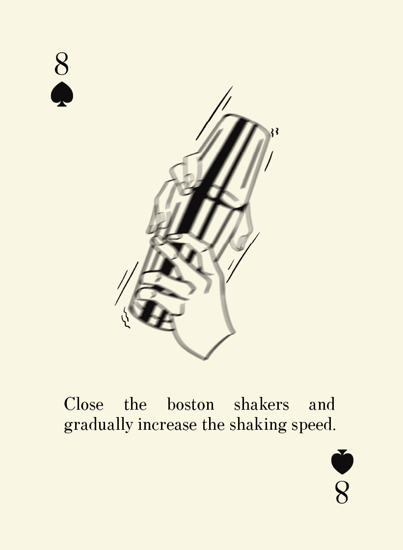 The brief required to redesign the suits of French playing cards, and gave the freedom to adapt any concept. With my fascination for cocktails, I wanted to partake it in a sober manner and illustrate the process required in the curation of them, specifically those that had ten steps to prepare.